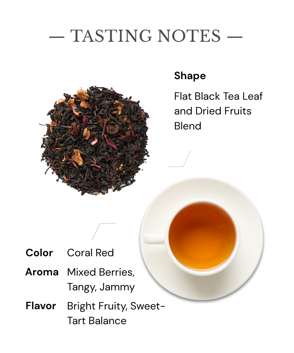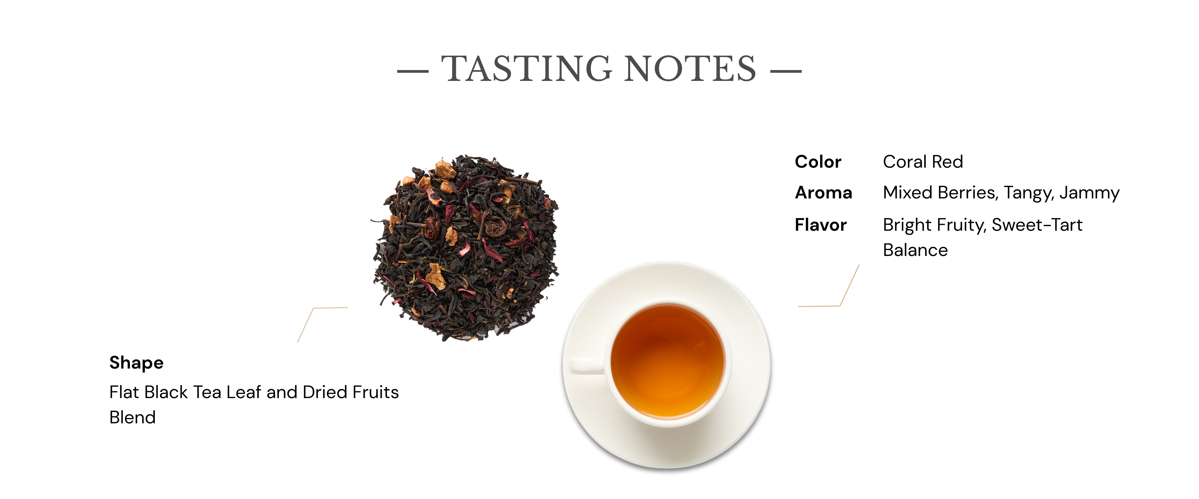 — 混合洛神、蘋果、葡萄、接骨木實與五種莓果。